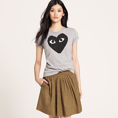 From JCrew: “We adore this playful, quirky line dreamt up by Japanese designer Rei Kawakubo (founder of cult label Comme des Garçons) and New York-based graphic artist Filip Pagowski, so we just had to share it with you. The sporty-chic separates all feature the duo’s signature (and completely endearing) heart logo, like this adorable take on the classic tee. Cotton. Crewneck. Short sleeves. Import. Machine wash. This style runs small. We recommend ordering one size larger than your usual size. Available in select stores.”