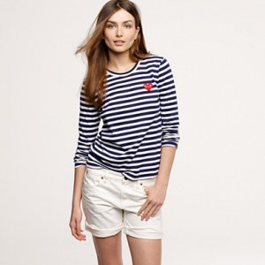 From JCrew: “We adore this playful, quirky line dreamt up by Japanese designer Rei Kawakubo (founder of cult label Comme des Garçons) and New York-based graphic artist Filip Pagowski, so we just had to share it with you. The sporty-chic separates all feature the duo’s signature (and completely endearing) heart logo, like this plucky take on a classic French sailor tee. Cotton. Crewneck. Long sleeves. Import. Machine wash. This style runs small. We recommend ordering one size larger than your usual size. Available in select stores.”