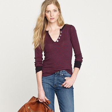 From JCrew: “Edith A. Miller is the result of some serious sartorial serendipity; founders Nancy Gibson and Jennifer Murray showed up to a summertime soirée wearing the same adored-but-impossible-to-find stripe tee. Bonded by their love of supersoft knits from little-known Pennsylvania menswear maker Robert P. Miller, they decided to approach the mill with a plan to make women’s clothes. One road trip (and a healthy dose of chutzpah) later, a sister line was born. Combining Gibson and Murray’s thinking-girl aesthetic with homegrown craftsmanship (the mill has been in the same family for six generations), we sense this might be the beginning of a latter-day American classic. Cotton. Crewneck. Long sleeves. Import. Machine wash.”