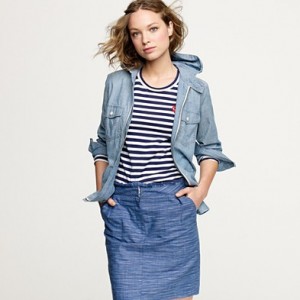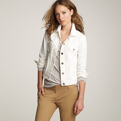 From JCrew: “The kind of jacket every woman should have in her closet. Updated for spring with a vintage repaired look that’s as soft and comfortable as your favorite pair of jeans. Cotton. Long sleeves. Chest pockets with button-flap closure. Functional buttons at cuffs. Hits at hip. Import. Machine wash.”