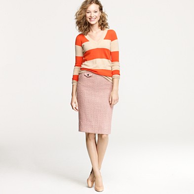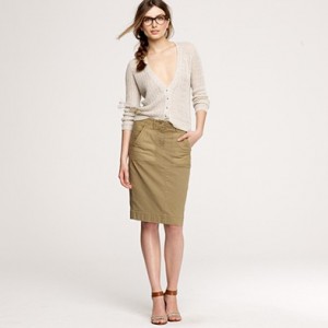 From JCrew: “A true design icon—the pencil skirt—meticulously shaped and seamed to figure-flattering perfection (say hello to mile-long legs). Rendered in a flirtatious leopard motif destined to turn heads. Cotton. Sits at waist. Contour waistband. Back vent. 25″ long. Import. Machine wash.”