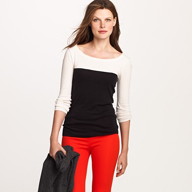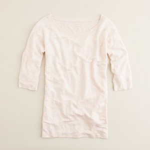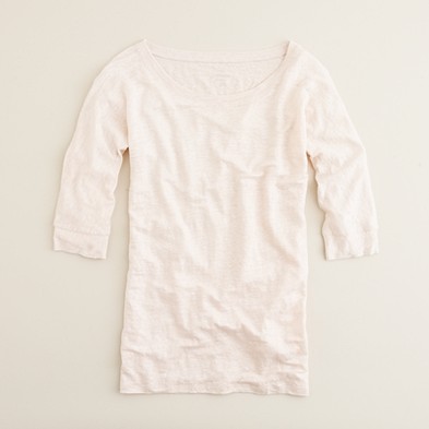 From JCrew: “Made of pure 100 percent linen, these exquisitely textured knits boast a flattering drapey fit. One touch and you’ll want one in every color. Fabric is semi-sheer. Boatneck. Three-quarter dolman sleeves. Import. Hand wash.”
