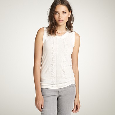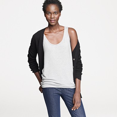 From JCrew: “Part of our special capsule collection of luxe wear-with-all basics, this sumptuous tank is spun from a special Italian viscose yarn, giving it a decadent drape and luxurious texture unlike any we’ve felt before. An effortless way to add polish to anything from a light jacket to your favorite denim, consider it an investment in a sustainable (and very chic) closet. (One touch and you’ll be obsessed too.) Poly/viscose with a hint of stretch. Scoopneck. Part of J.Crew Collection. Import. Hand wash.”