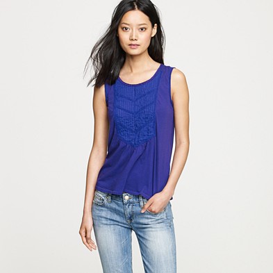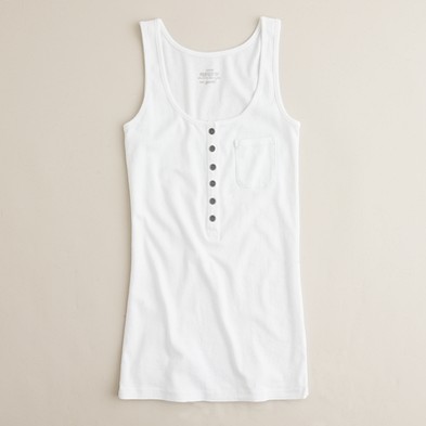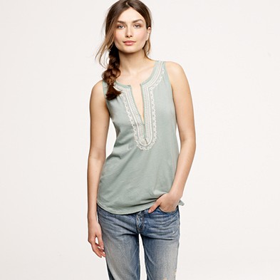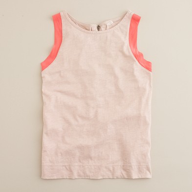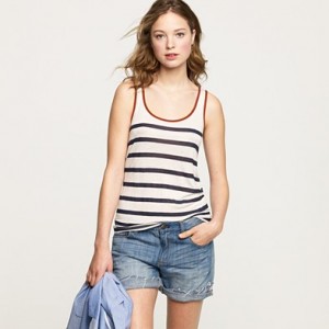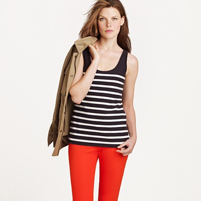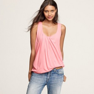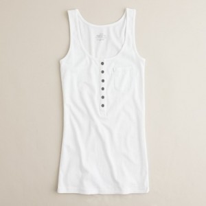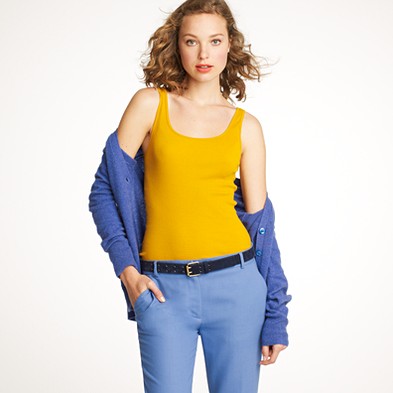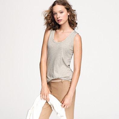 From JCrew: “Silk trim along the neckline and armholes is what makes this tank extra special. It’s spun from a heavenly blend of cotton and Modal®—so soft you’ll want one in every color. Scoopneck. Import. Machine wash.”