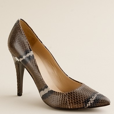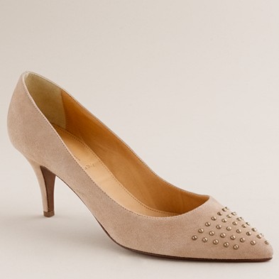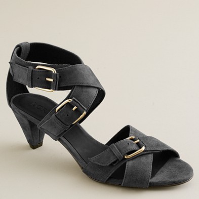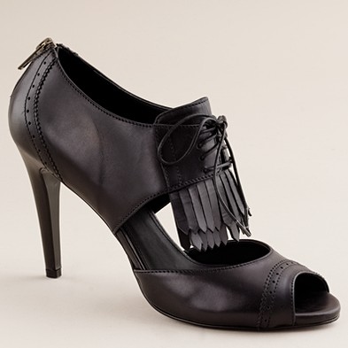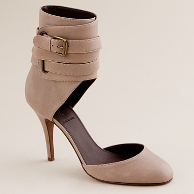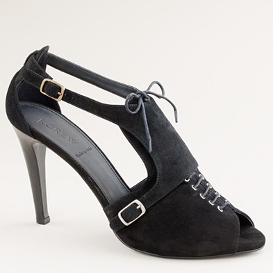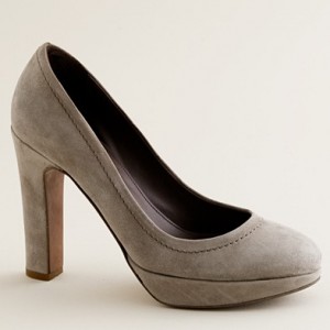 From JCrew: “Presenting Pilar, our of-the-moment fusion between sweet Mary Janes and sexy peep-toe booties. Our elegant rendition is made of plush Italian suede with an alluring high heel (built sturdy for easy walking) and an exterior platform (for a flattering, leg-lengthening lift). It’s easy to see why they’re our new favorite pair. Skinny waxed cotton laces. Man-made lining and sole. 4 1/4″ matte stacked heel with a 1″ exterior platform for extra comfort. Made in Italy (of course).”
