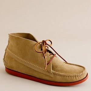 From JCrew: “Owned and operated by the Shorey family since 1909, Quoddy first became famous for its hand-sewn moccasins and is now also legendary for its time-honored craftsmanship and high level of artistry. Each pair produced by the Perry, Maine-based company is made to order and finished completely by hand—no glue, staples, plastic molding or other more advanced processes are involved. And you’ll own them for a lifetime since you can always send them back to Quoddy to take advantage of their special resoling service. This stunning Quoddy chukka sports rustic details, like the moc-inspired leather laces and a red camp sole, to polish off the look in classic Maine style. Suede upper and lining. Rubber sole. USA. Catalog/jcrew.com only.”