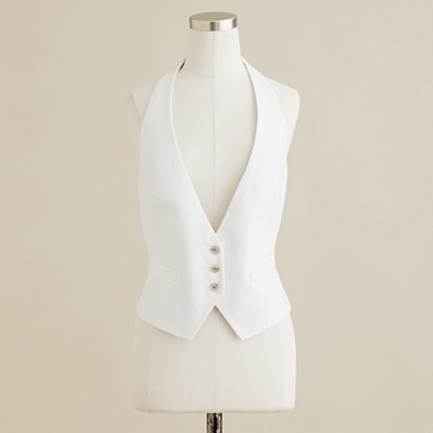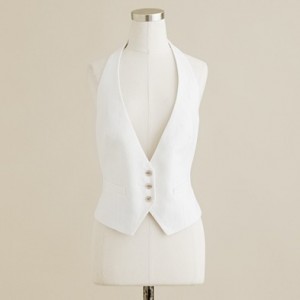 From JCrew: “We love everything about this vest, from the stunning lace design to the simple crop silhouette. Beautifully dressed in cotton lawn rendered in Battenberg lace—a whimsical motif that dates back to the early 16th century. Notice the cotton tape overlay rendered in delicate swirls and flowers—they’re all lovingly hand applied. A sweet scalloped edge along the neckline and hem lends a final feminine flourish. Short sleeves. Hits at waist. Part of J.Crew Collection. Import. Dry clean.”