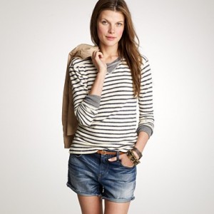 From JCrew: “The design darling of our jean-short collection, in soft and slouchy Japanese denim (it has a cult following because of its amazing look and feel). For that authentic vintage vibe, we gave it a special enzyme wash and finished it with frayed hems. Our favorite part? The selvedge tape that peeks out when you roll up the cuffs. Japanese cotton. City fit—our lowest rise. Sits just above hip. Belt loops. Zip fly. Traditional 5-pocket styling. 4″ inseam with cuffs. Import. Machine wash. The nature of this product may result in color transfer—we suggest laundering at home in your machine before wear.”