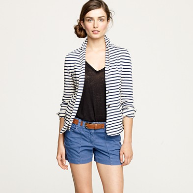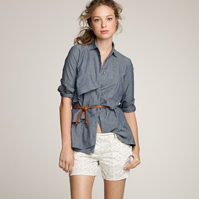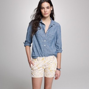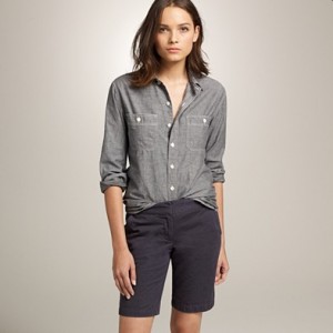 From JCrew: “Our favorite warm-weather short is feminine and modern all at once—with crisp, clean lines and a velvety feel. We kept the finish matte, so it pairs just as nicely with tees and sandals as it does with sequins and heels. Cotton. City fit—our lowest rise. Sits just above hip. Zip fly. 4″ inseam. Import. Machine wash.”