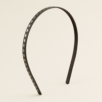 From JCrew: “The prettiest alternative to jewelry, with light-catching studs. Leather. Old English brass-finish (smoldering brick) or hematite-finish (black) hardware. Import.”