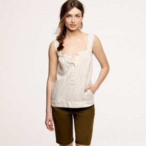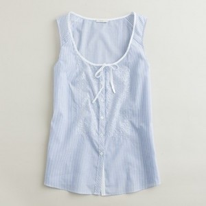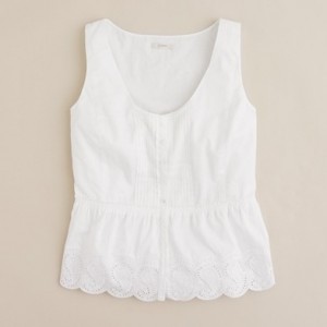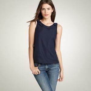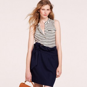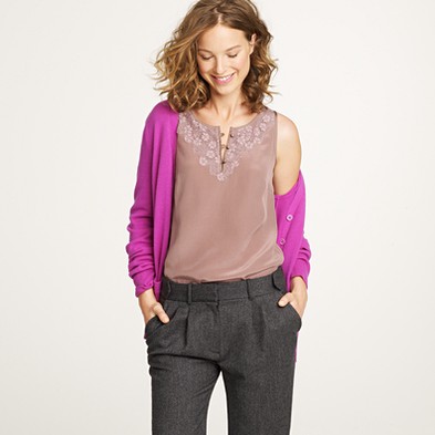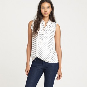From JCrew: “Our designers have done it again. Endlessly feminine in a popover silhouette—we trimmed the collar and sleeves in tissue-like ruffles and finished them off with a modern raw edge. In crinkled silk chiffon and snappy polka dots, it’s our go-to blouse for instant frills. Button closure. Fully lined. Import. Dry clean.”