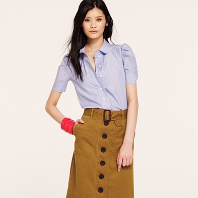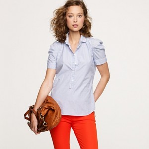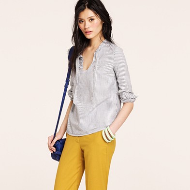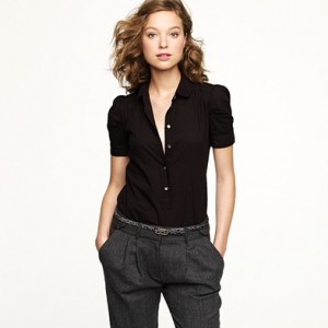 From JCrew: “With a sweet tie at the neck and delicate shirring, this unfailingly feminine blouse is topping our want-it-now list. Cotton. Long sleeves. Import. Machine wash. Catalog/jcrew.com only.”