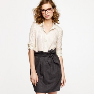From JCrew: “Borrowed from the boys but designed and tailored impeccably for us—that’s why we call it perfect—with precise placement of waist and bust darts to create our most fitted, feminine silhouette yet. Perfect with everything in an airy mix of silk and cotton dressed in mini squares. Long roll-up sleeves. Import. Machine wash. Catalog/jcrew.com only.”