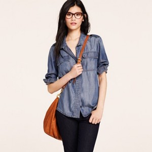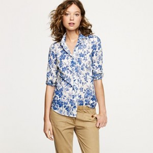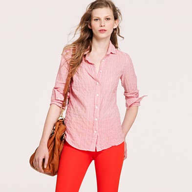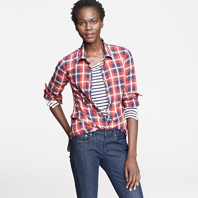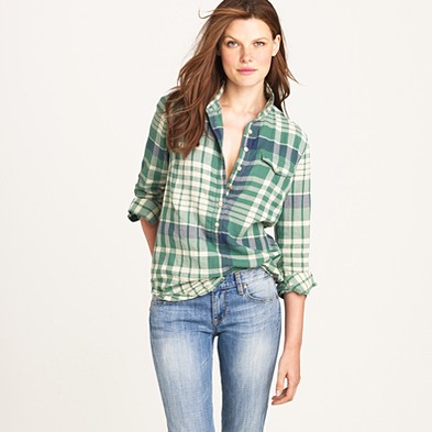 From JCrew: “We absolutely adore this boy shirt done up in a handsome plaid—originally designed for our men’s shirting collection, it was so good we couldn’t help stealing it for ourselves. Cotton. Long roll-up sleeves. Import. Machine wash.”