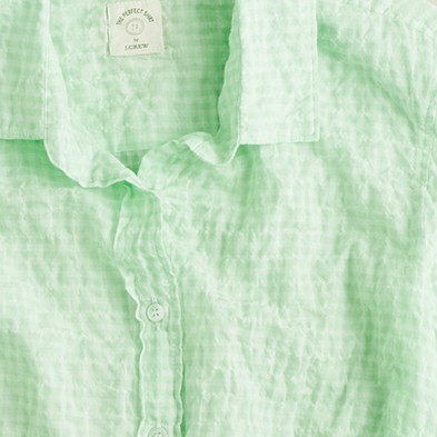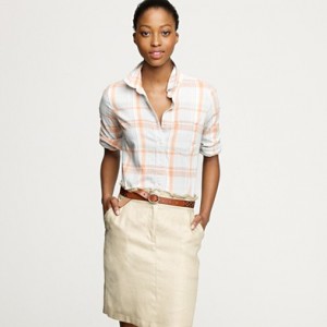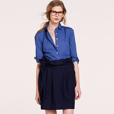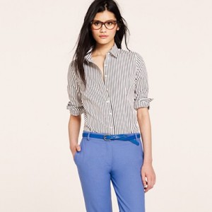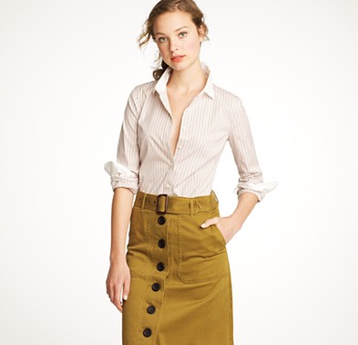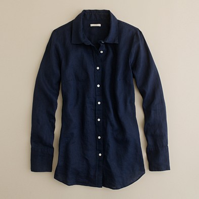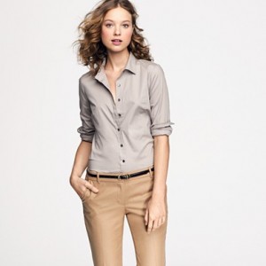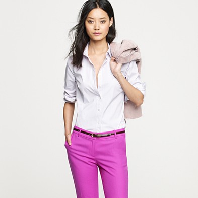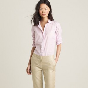 From JCrew: “It’s hard to improve on perfection—but we’re always up for a challenge. Our design team sourced an even richer version of our wildly prized silk crepe de chine to give this classic shirt even more delicious drape. Tailored to perfection—neither too short nor too long—we’re sporting ours tucked into sleek pencil skirts for extra polish, or languid and loose for that cool-girl luxe we love. Button closure. Long sleeves. Functional buttons at cuffs. Part of J.Crew Collection. Import. Dry clean.”