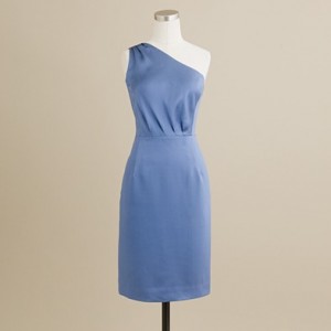 From JCrew: “Our new obsession—the one-shoulder silhouette—in a sleek, so-sophisticated party dress in lustrous silk satin. Infinitely flattering, feminine and (most important) fun, this design darling is a perfect alternative to the traditional strapless dress. With a fitted, body-skimming bodice and starburst pleating at the shoulder and waist. Perfect for any special occasion, this is one you’ll wear again and again. Silk. Side zip. Slight A-line skirt. Fully lined. Hits at midthigh. Part of J.Crew Collection. Import. Dry clean.”