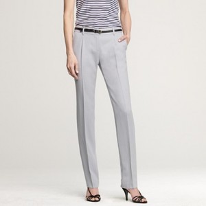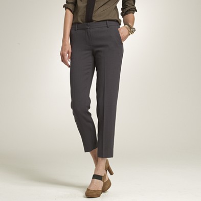 From JCrew: “We’re enamored with this incredibly chic high-waist design—simply shaped and finely tailored with exquisite lines and a wide, graceful leg. Fitted through the waist and hip with an elegant drape—it’s easy to see why it’s our new favorite pair. Fashioned from a light wool crepe (with a soft matte texture, this fluid fabric keeps the wearing easy and crease free). Belt loops. Zip fly. Slant pockets. Import. Dry clean. Available in select stores.