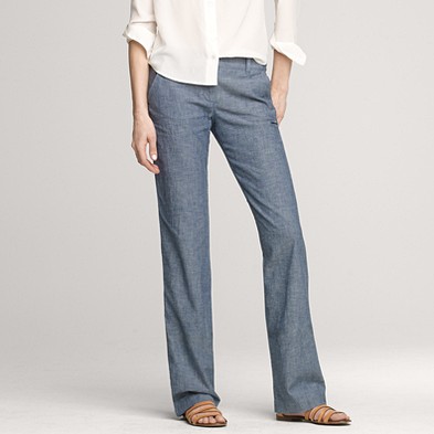 From JCrew: “The epitome of effortless chic—our newest pant love, here in an easy-wearing cotton chambray with a looser fit and a laid-back drape that looks at home everywhere from the beach to bustling city streets. We’re wearing ours rolled at the cuffs with some super-strappy sandals. Belt loops. Zip fly. Slant pockets, back pockets. Import. Machine wash.