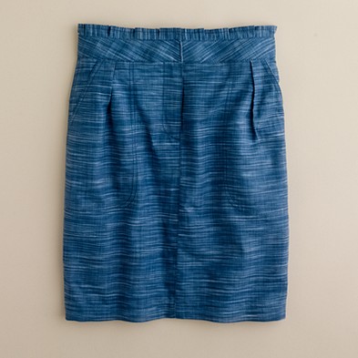 From JCrew: “An expertly tucked and tailored summer gem in our so-of-the-moment mid-length. (We’re all about the longer hems this season.) In crisply shaped linen with a flattering-on-everyone silhouette—perfect for sunny days on or off the beach. Wear it hiked up and belted or slung low so it sweeps just above the knee. Linen/cotton. Tulip skirt. Sits below waist. Front zip. Slant pockets, back welt pockets. Back vent. 20″ long. Import. Machine wash.”