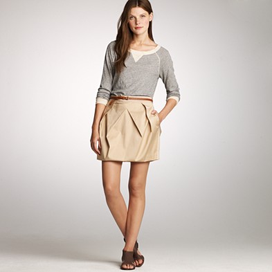 From JCrew: “A beautiful lantern silhouette—one of our favorites of the season—crafted in smooth cotton sateen. Infinitely feminine with graceful folds and finished with a grosgrain ribbon waist, it’s elegant and sweet all at once. Cotton with a hint of stretch. Sits at waist. Back zip. Slant pockets. 17″ long. Import. Machine wash.”