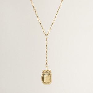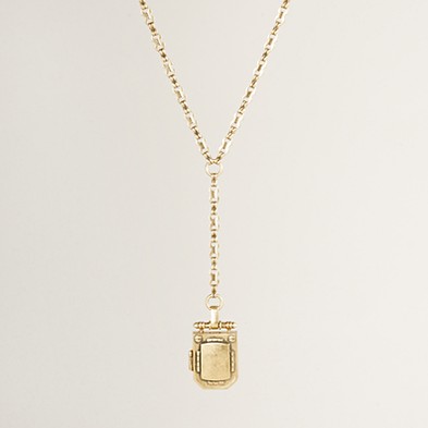 From JCrew: “Style and substance: Our designer searched out a chunky tactile chain and paired it with a found-it-at-the-flea-market-style pendant for a boho-chic twist on the classic locket necklace. Finished with vintage-inspired plating to give it an heirloom feel. Light gold ox-plated brass casting with a plated brass chain. Signature spring clasp closure. Import. Length: 28″.”