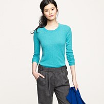 From JCrew: “A new spin on cashmere—our designers added a special mercerized lambswool, known for its incredible softness and the way it beautifully absorbs color, to create this wear-with-all wardrobe must-have. In nine crush-worthy hues, this is one you’ll reach for again and again. Mercerized wool/cashmere in a 7-gauge knit. Crewneck. Long sleeves. Hits at hip. Import. Hand wash.”